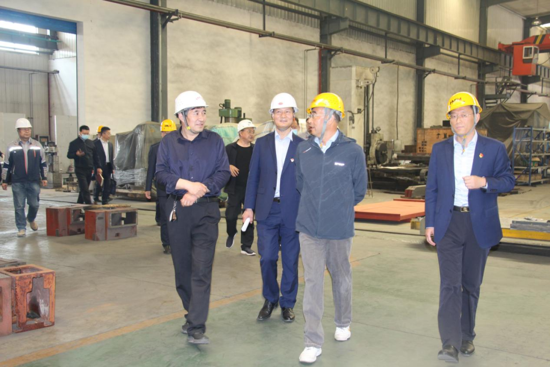 2022-05-195月19日,甘肅酒鋼集團(tuán)西部重工股份有限公司副總經(jīng)理白斌一行來豐收機(jī)械公司考察調(diào)研。豐收機(jī)械公司領(lǐng)導(dǎo)班子成員陪同考察調(diào)研并進(jìn)行座談。(在生產(chǎn)作業(yè)現(xiàn)場考察調(diào)研)考察組一行首先進(jìn)入生產(chǎn)車間,對豐收機(jī)械公司的生產(chǎn)布局,生產(chǎn)設(shè)備設(shè)施,作業(yè)現(xiàn)場,產(chǎn)品及性能等進(jìn)
