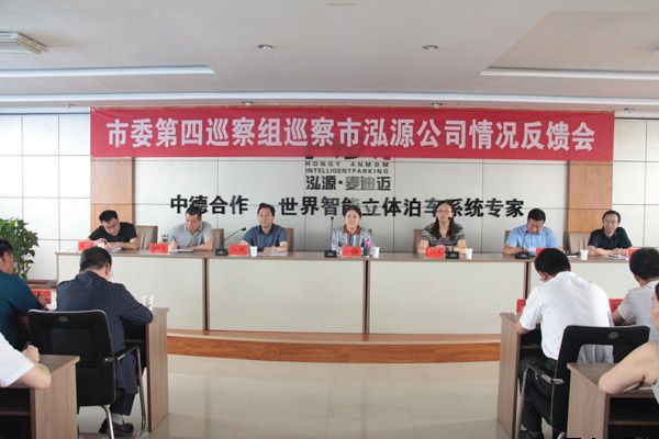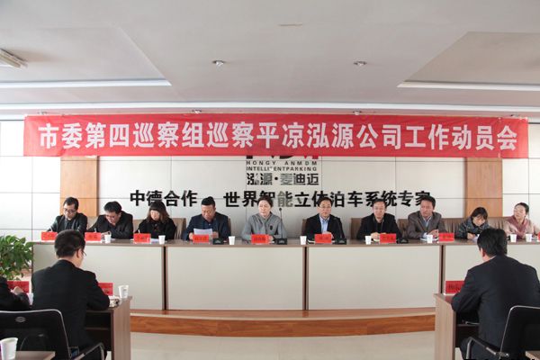 2019-03-312019年3月29日上午,市委第四巡察組巡察平?jīng)鲢垂竟ぷ鲃訂T會在甘肅泓源麥迪邁智能立體停車有限責(zé)任公司3樓會議室召開。市委巡察辦主任趙玖梅、市紀(jì)委監(jiān)委派駐市農(nóng)牧局紀(jì)檢監(jiān)察組組長劉剛、市委巡察辦巡察專員趙生寶出席會議并作講話。泓源公司黨委書記、董事